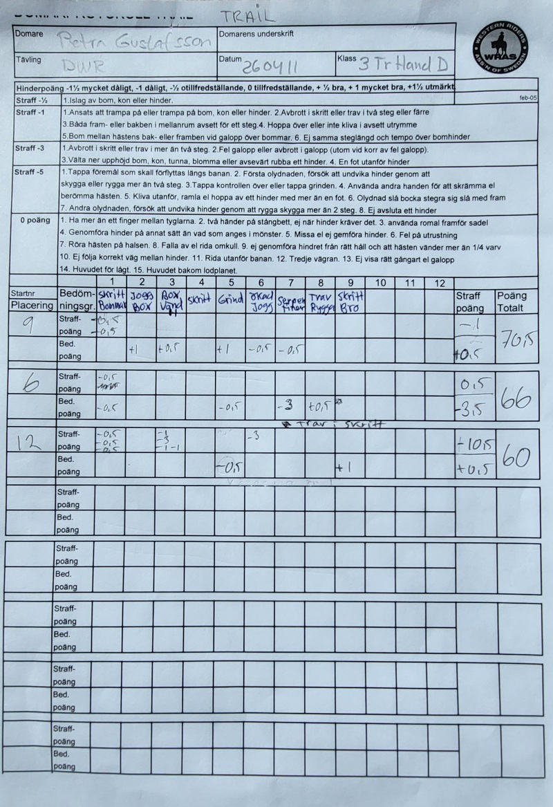 Nytt mönster för Trail D finns att ladda ner utan galoppbom och L! Klass 1 och 2 + märkestagningen är struken.