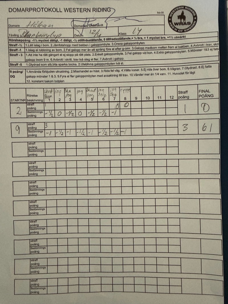 Tävlingssekreterare: Ulrika Pålgård 070-7449185