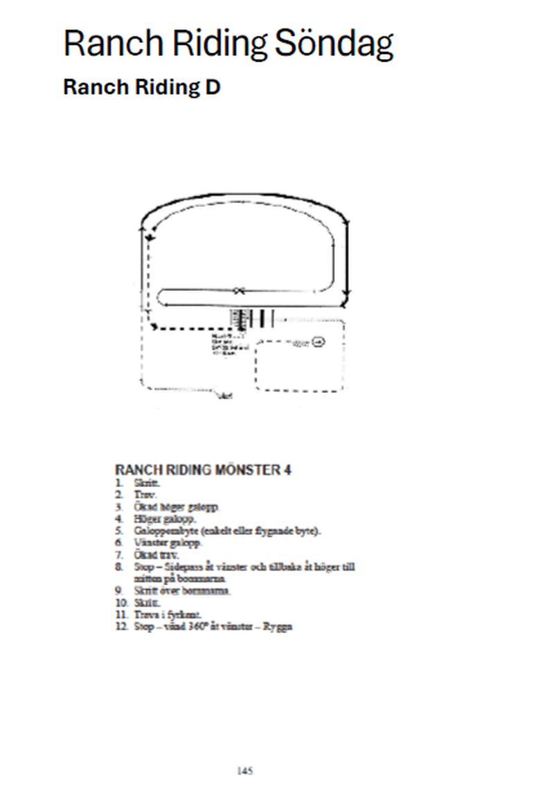 | 26 | Freestyle Reining D Open | Eget mönster. Pris till bästa utklädnad! Det är ok utan huvudlag, en eller två händer, byta hand etc. Ange så fort du kan vilken musik du vill ha... t ex låt på spotify eller egen fil så vi kan få ordning på allt innan tävlingen :-) Obligatoriska rörelser är minst 2 spins till höger och minst 2 spins till vänster, minst 2 stops. (Exempel se reiningmönster 12). (Du startar antingen D-nivå eller C-nivå, inte båda). | 0 | |||||||||||||||||||||||||||
