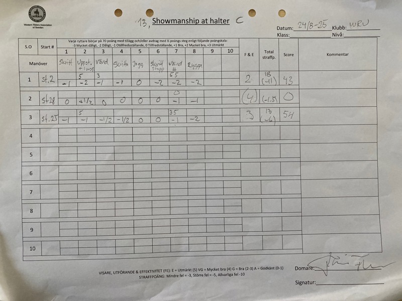 10. | Western Riding E | 3 |