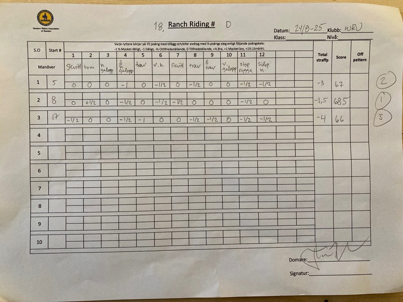10. | Western Riding E | 3 |