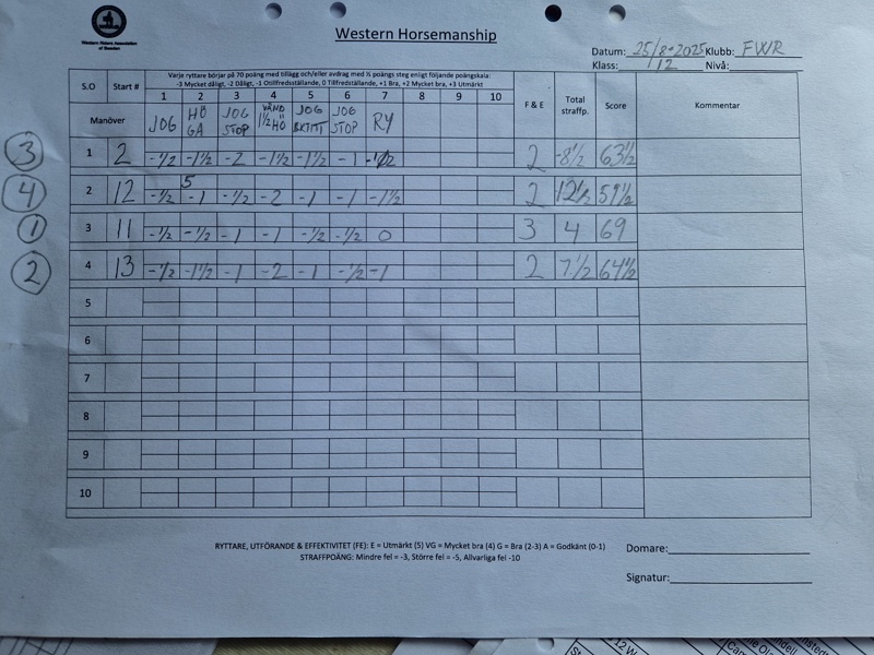 13. | Western Riding skritt & trav | 3 |